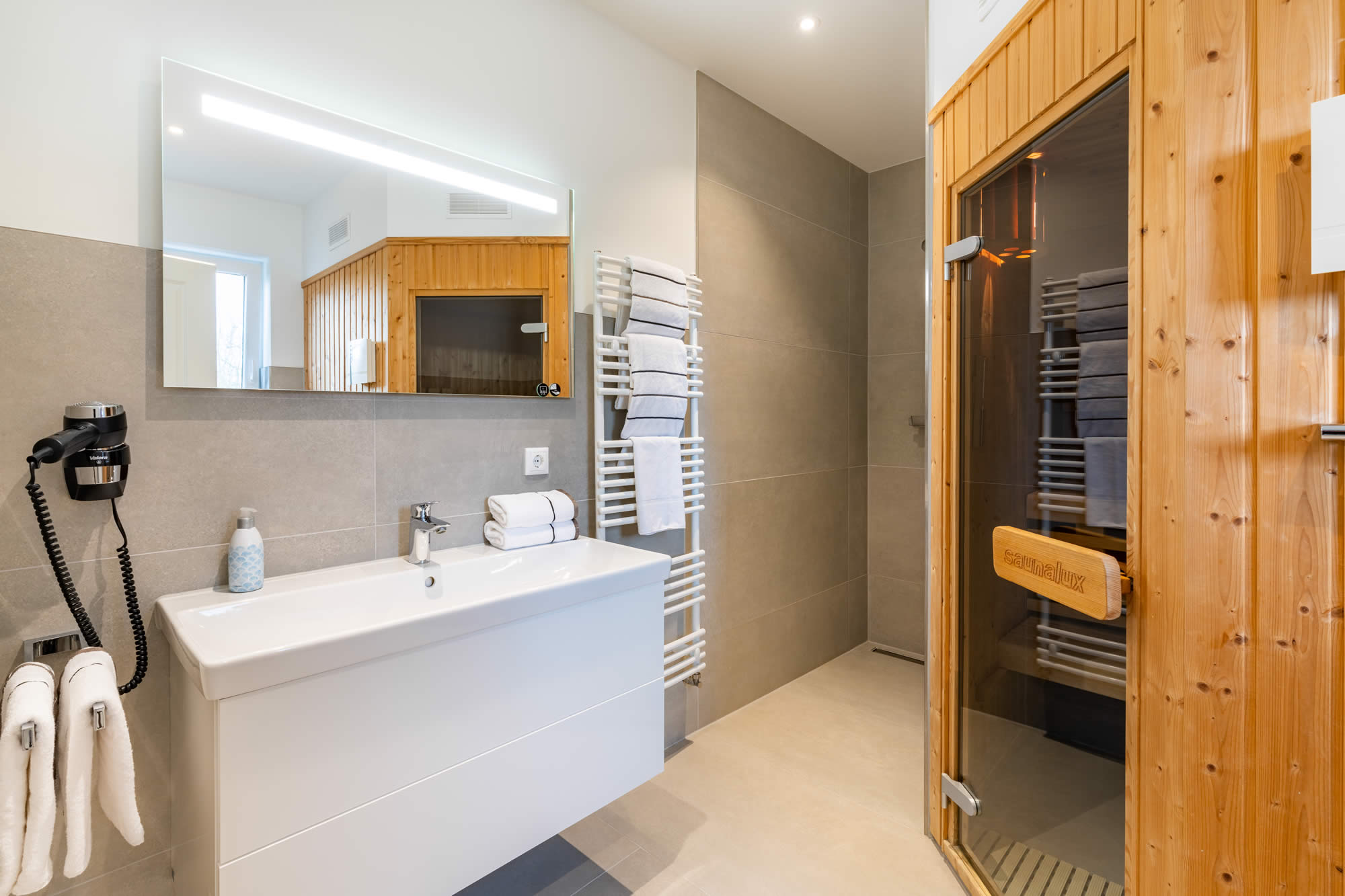 - Hauseigene Sauna mit Ambientebeleuchtung