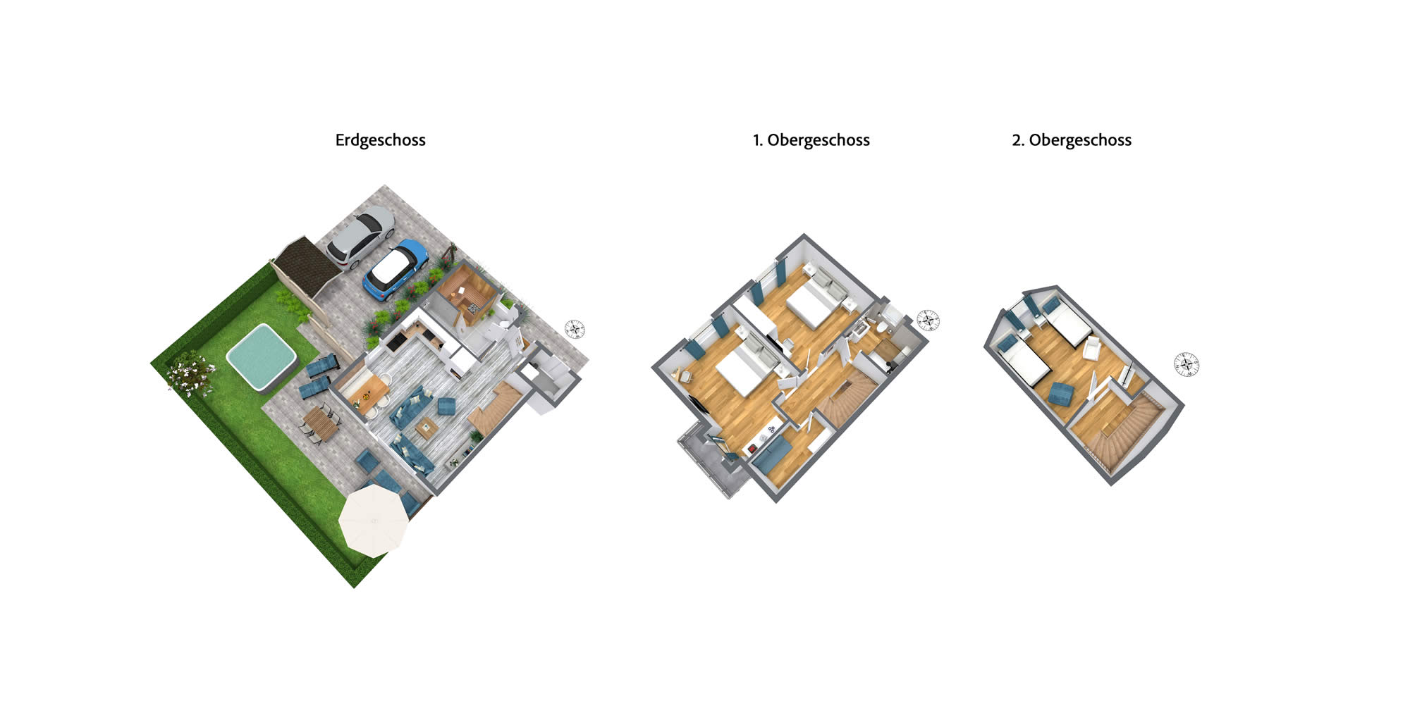 - 3 Schlafzimmer mit hochwertigen Boxspringbetten und Einzelbetten